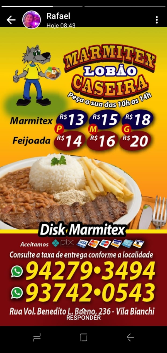 Welcome to Frango Assado Do Lobao, a culinary gem nestled in Bragança Paulista. Specializing in mouthwatering roasted chicken, this restaurant is renowned for its distinct flavors that set it apart from the competition. Customers rave about the intensive taste found in every bite, which spans a diverse menu that includes not only succulent roasted meats but also delicious marmitex meals, stuffed potatoes, and assorted sandwiches.